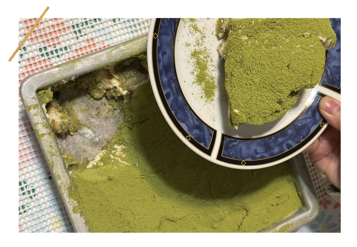 She Was Holding The Matcha (Woah-oh): Every Christmas the last few years, I’ve faithfully contributed a tiramisu to the already-groaning table of food. But it’s something I’m thrilled to do because no one is ever unhappy to see a dish of mascarpone heading their way. It’s a no-bake dessert I’ve made enough times now that it’s a snap to pull together. In the pursuit of whimsy, I have dabbled in expanding my tiramisu flavor portfolio. Last Easter, I gave my lady fingers a swim in a lavender earl grey concentrate. This year, for another springy twist, I tapped into a very TSS-core palette: matcha! I steeped some extra strong green tea for the biscuits to be dunked into, substituted a botanical gin over rum into the cream mix, and sifted this green tea coconut powder on top. Isn’t that color just mesmerizing? Per the original recipe’s instructions, the dusting should pile so thick you have to hold your breath when taking a bite!