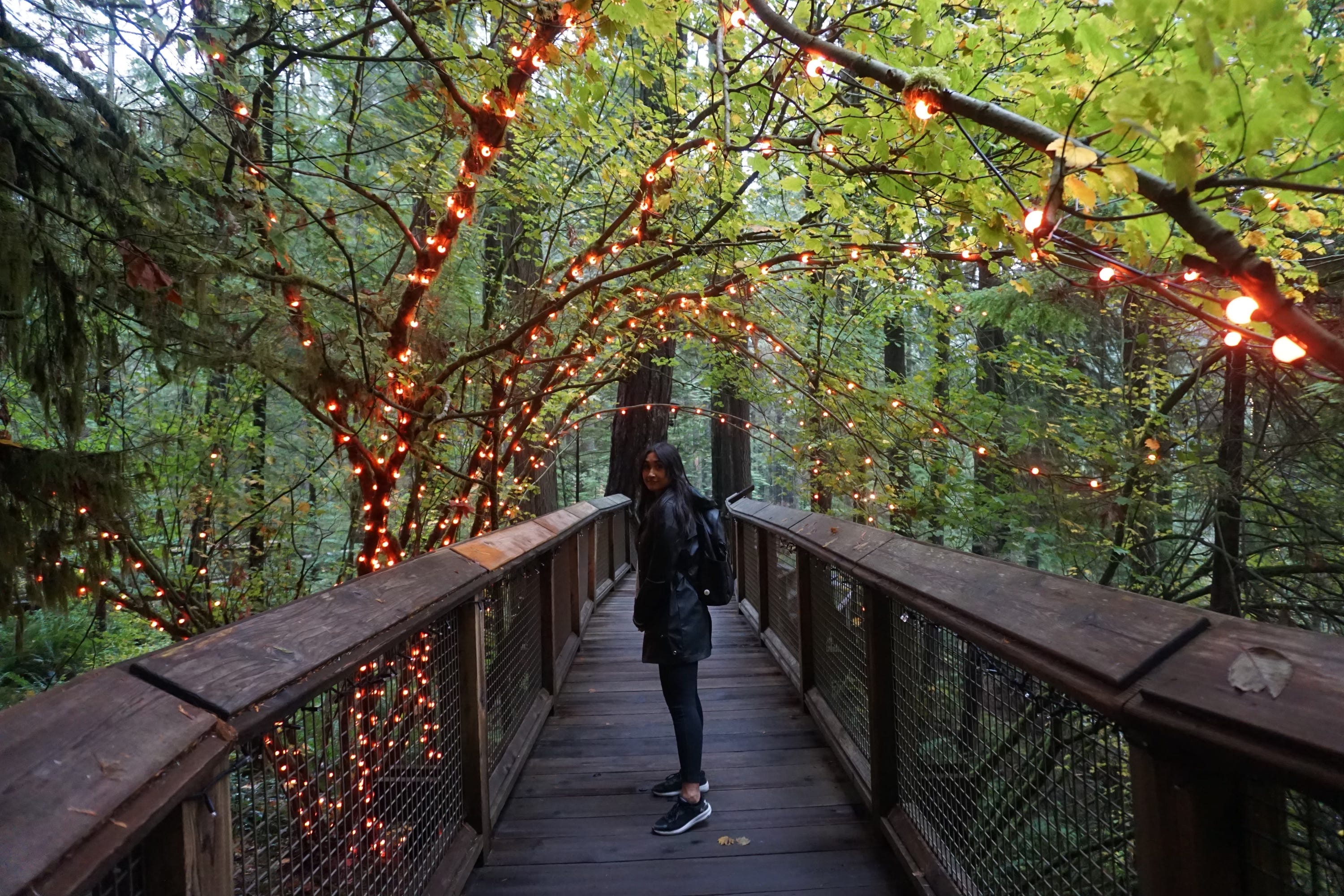 Capilano Suspension Bridge: In my opinion this is the non-negotiable thing to do in Vancouver. This park features a swinging suspension bridge that you take into a beautifully wooded park area set up with trails to walk through and an additional Treetops Adventure path comprised of seven more suspension bridges platformed into the trees. The panoramic Cliffwalk they recently installed is also surreal. You can certainly go to the park during the day but Swifties have the added seasonal benefit of coming to Vancouver when our annual Canyon Lights attraction is on. Every year the park strings Christmas lights up on the bridge and in the trees for a stunning holiday display and for December 5-9, they are doing Canyon Lights (Taylor’s Version) and turning the suspension bridge into a gigantic friendship bracelet in addition to incorporating Swiftie-themed photo ops throughout the park. I highly recommend buying tickets online for a timed spot to enjoy the park which you can do so HERE.